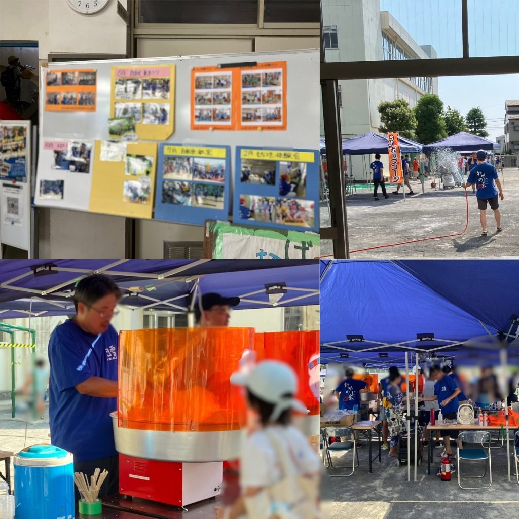 今年も気温36℃の猛暑日。開始前から少しでも涼しくなるようにこまめに水撒きをしたり音楽を流したり会場づくりに色々工夫されていらっしゃいました。おやじの会メンバーは外での活動でしたので余計大変だった事と思います。